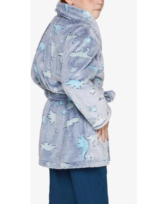 - Bata divertida para niño, anudada a la cintura y con cuello smoking.