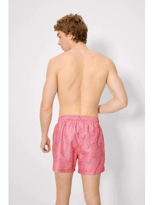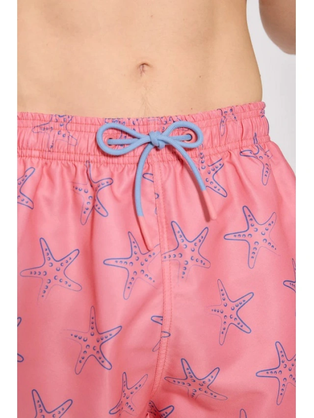 -Bañador de largo medio para hombre con estampado de estrellas de mar y tejido ligero de secado rápido.