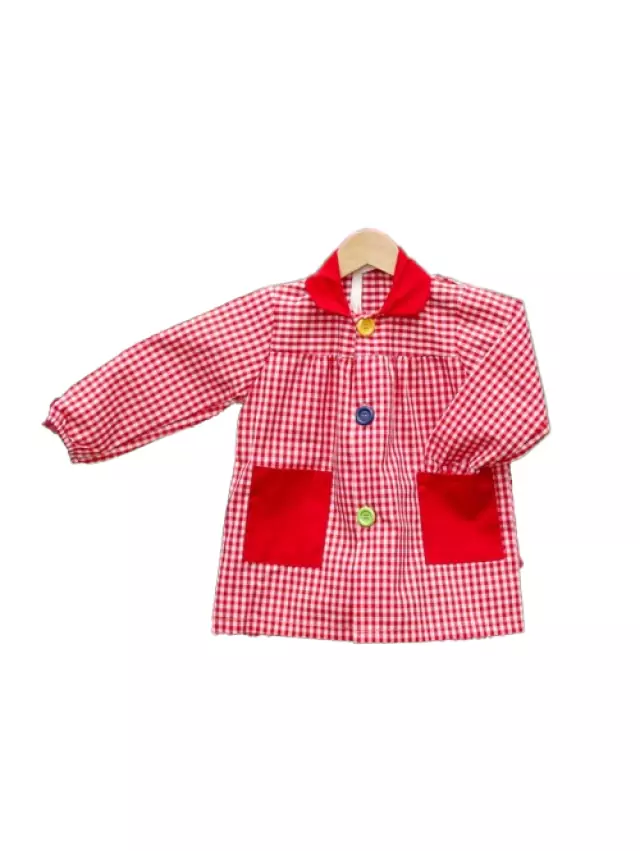 - Con botones grandes para facilitar el aprendizaje del abotonado. Dos bolsillos frontales y asa en el cuello para colgar en el perchero.