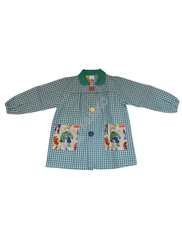 - Con botones grandes para facilitar el aprendizaje del abotonado. Dos bolsillos frontales y asa en el cuello para colgar en el perchero.