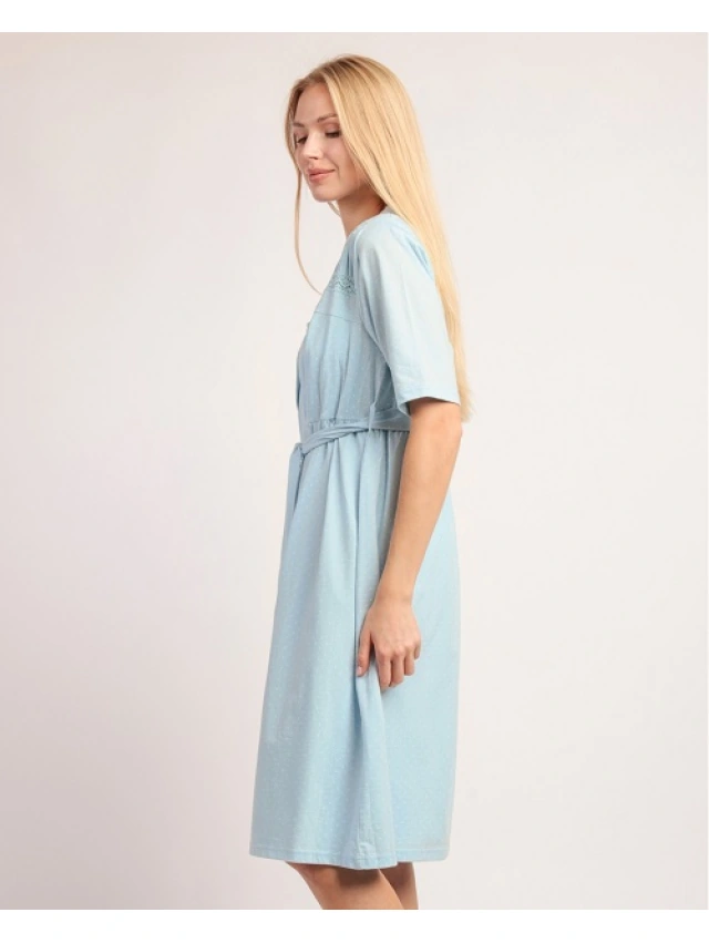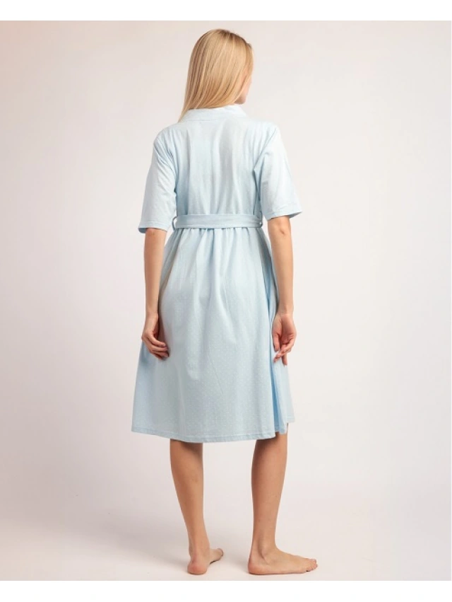 -Bata de punto de algodón, de manga corta, de color cielo.