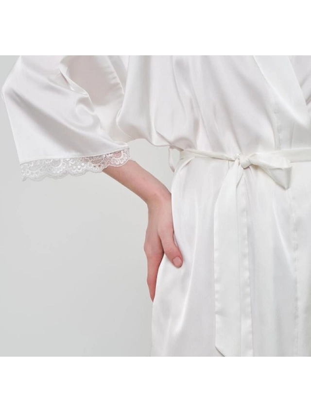 Descripción: - Bata confeccionada en un suave satén de color blanco de la marca MUYDEMI. - Diseño clásico atemporal con detalles combinados de encaje en las mangas y en el bajo que dan un toque muy elegante. - Se puede combinar con otras prendas de la colección, como un pijama, ref; 280603 - Composición: Satén - 96% Poliéster - 4% Elastán.