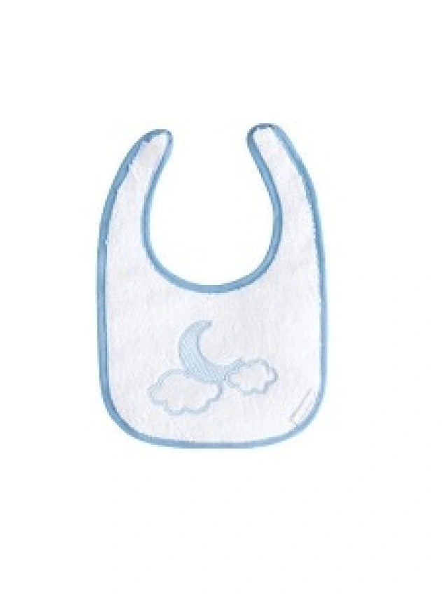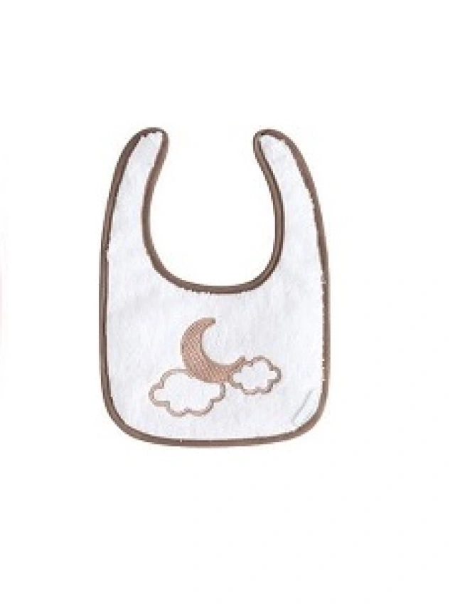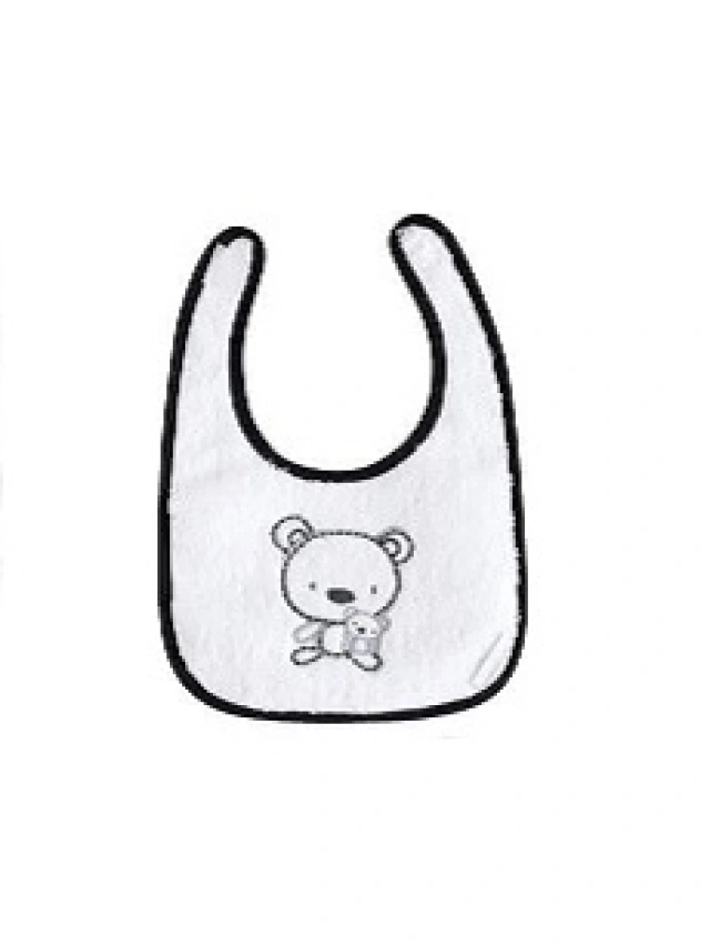 Descripción: Características: - Baberos bordados de rizo plastificado con cierre de velcro atado al cuello, en alegres colores surtidos para que la hora de la comida sea una experiencia divertida para tu bebé. - Medida: 14 x19 cm - Composición: 100% Algodón.