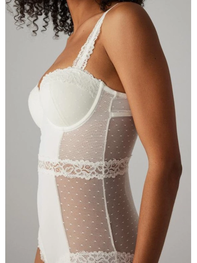 - Body con aro y con relleno en plumeti y encaje.