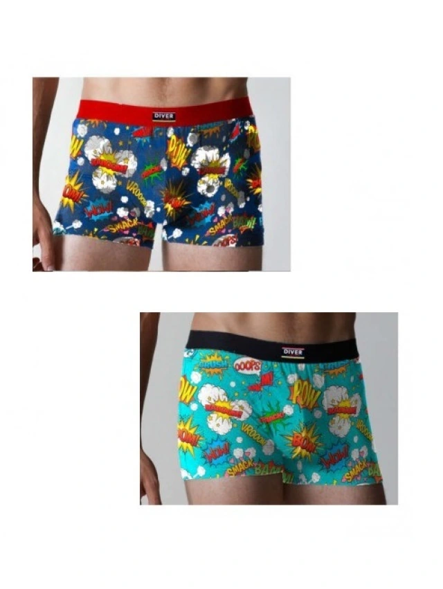 - Pack 2 Bóxer Caballero COMIC en Color Turquesa y Azul, 2 unidades de diferentes estampados y diferente diseño