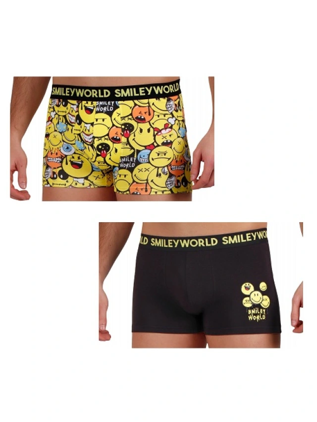 - Pack 2 Bóxer Caballero SMILEY Color Negro y Amarillo, 2 unidades de diferentes estampados y diferente diseño
