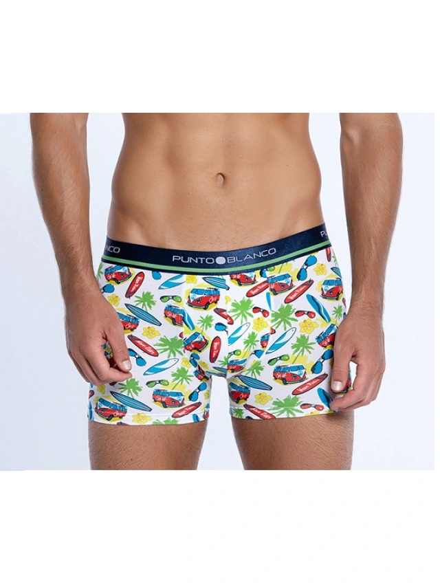 - Bóxer de algodón elástico de 2 unidades, presenta dos colores, ¡uno de los cuales es un divertido estampado tropical estilo surf y otro azul sólido.