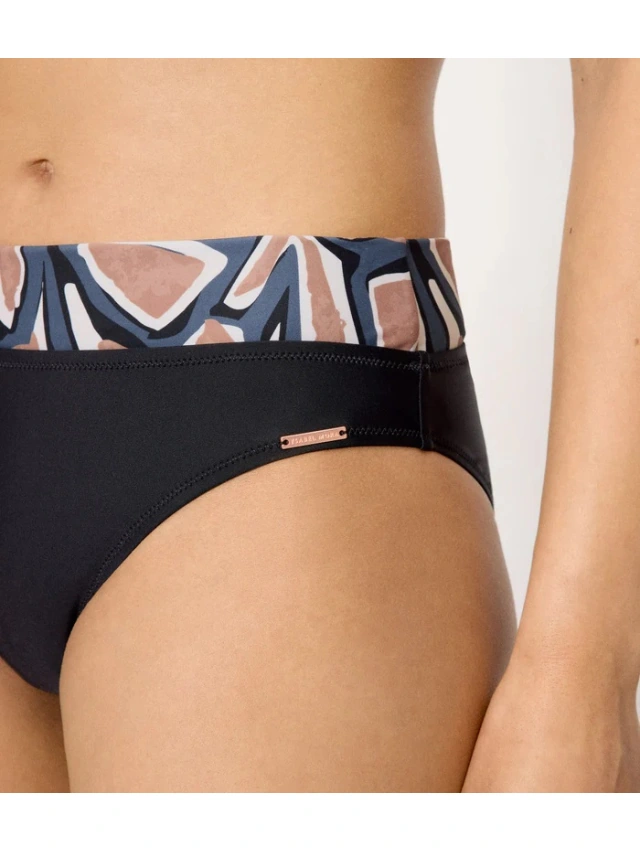 -Braga de bikini de color negro con cinturilla estampada de altura adaptable.