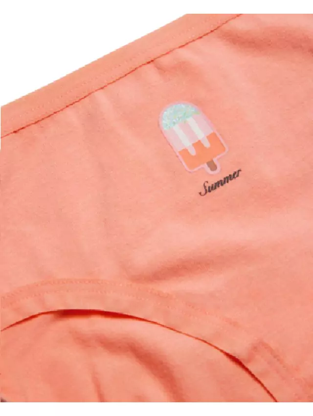 - El pack está compuesto por una braguita de color naranja y otra de color verde con divertidos estampados de limones y helados.