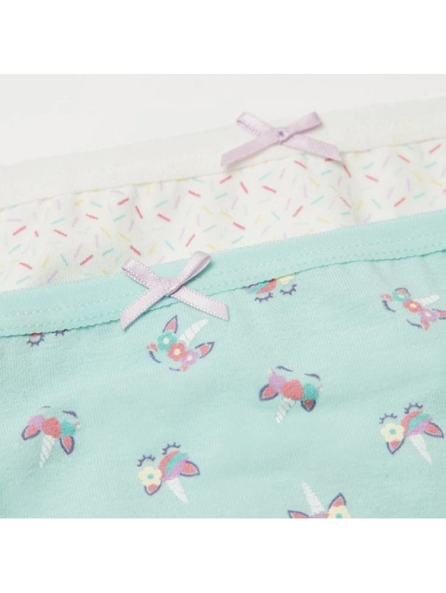 Pack de 2 braguitas de algodón infantiles, confeccionadas en algodón natural, las fibras naturales de este material aportan suavidad, adaptabilidad y comodidad que se alinean en la nueva propuesta de ropa interior para niña.