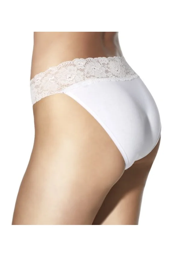 - Línea de braguitas de algodón que combinan gran comodidad y feminidad, gracias a la calidad del tejido de algodón con tratamiento antipeeling "Silk touch" con puntilla de extrema elasticidad, sin gomas en cintura, que no marca.
