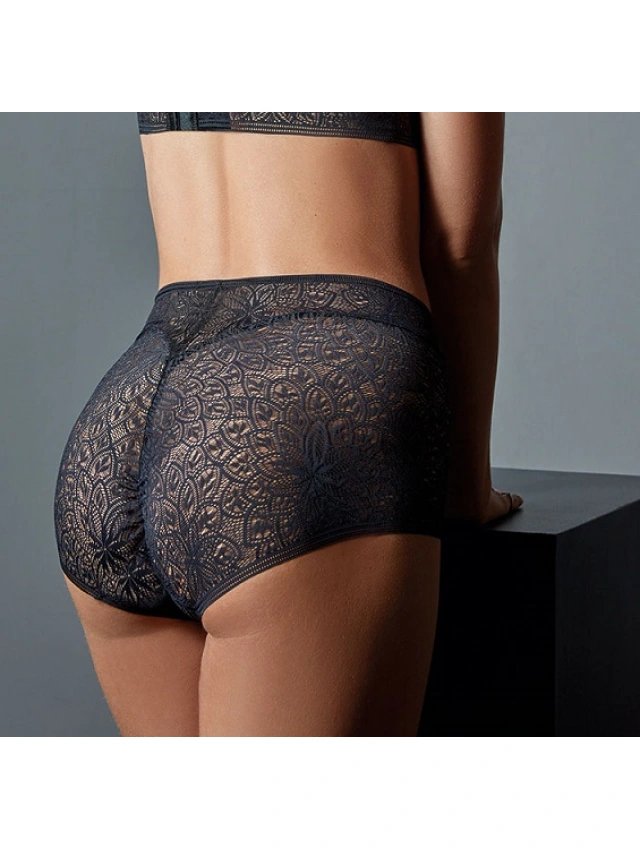 - Línea de fino y suave encaje, muy elástico, de atractivo diseño floral rematado con un falso ribete.