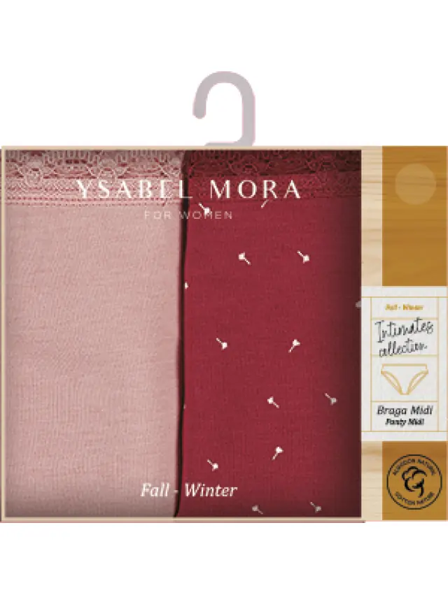 - Set de dos bragas midi de algodón en merlot y French pink.