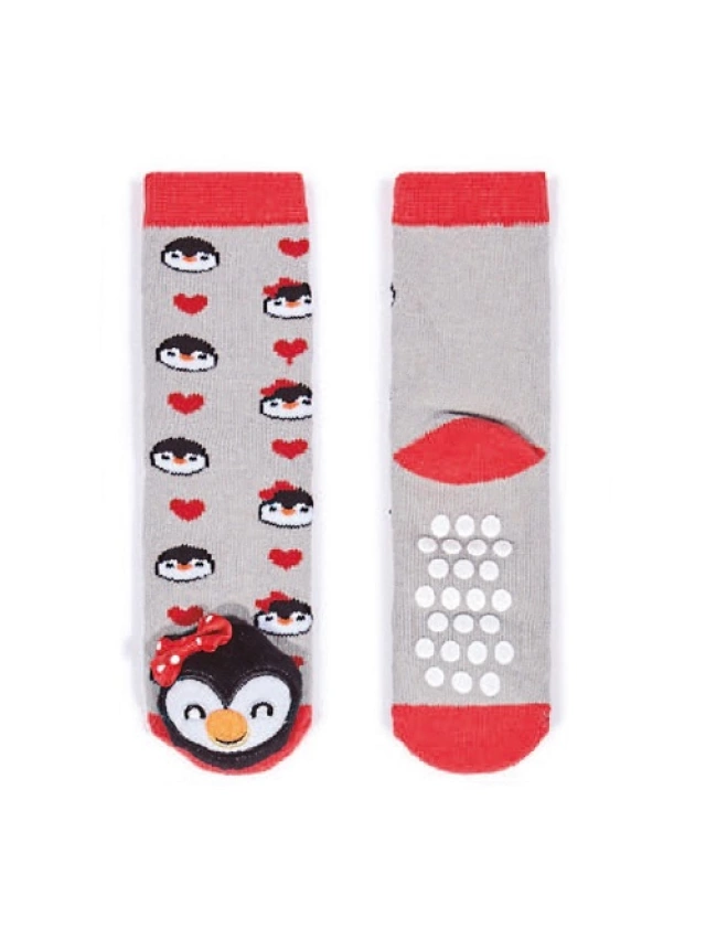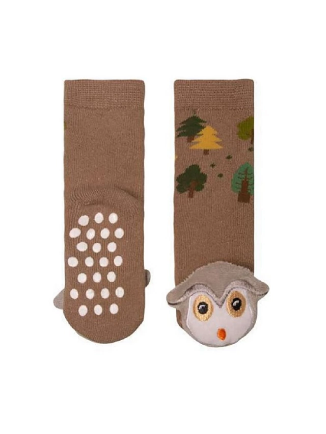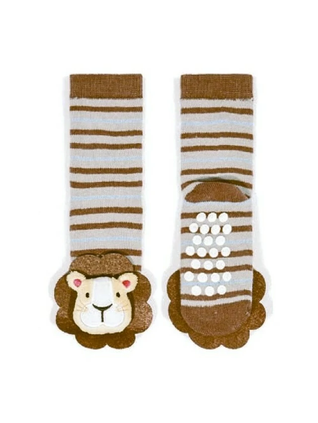 - Calcetín antideslizante para bebé. Cabecita de animalito en el empeine con efecto sonajero, cuando el bebe mueve los pies suena.