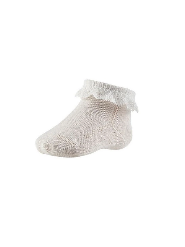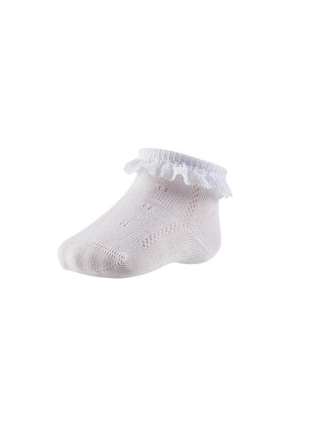 - Mima los pies de tu bebé con nuestros calcetines tobilleros calados decorados con blonda.