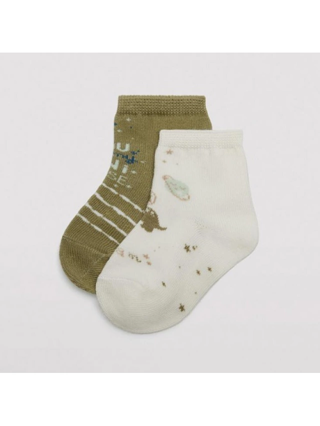 - Pack de 2 pares de calcetines tobilleros para bebé tejidos en suave algodón.