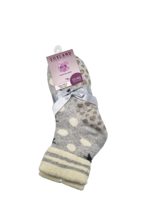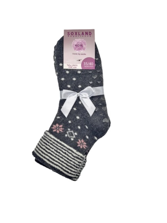 -Calcetín Antideslizante de señora de la marca Soxland, con puño sensitive, en diversos estampados de varios colores. Interior confeccionado en rizo que aporta comodidad y calidez.