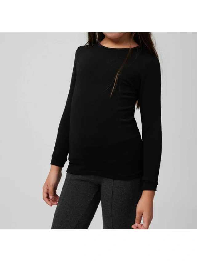 - Camiseta térmica infantil de manga larga y cuello redondo.