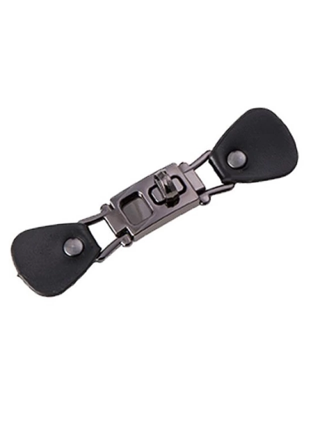 Descripción: - Broche de chaqueta metálico con los extremos en piel sintética. - Este tipo de broches son perfectos para chaquetas o abrigos. - Tienen un diseño moderno y perfecto para combinar con todo tipo de prendas. - Mide 10.5cm de largo total. - Su cierre es resistente y duradero y tiene un acabado de gran calidad. - La superficie del cierre es brillante y muy vistosa.