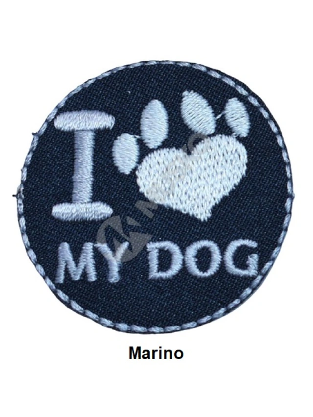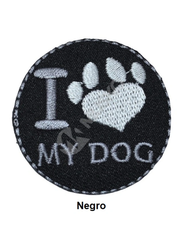 - Aplicaciones termoadhesivas con diseño I Love My Dog.