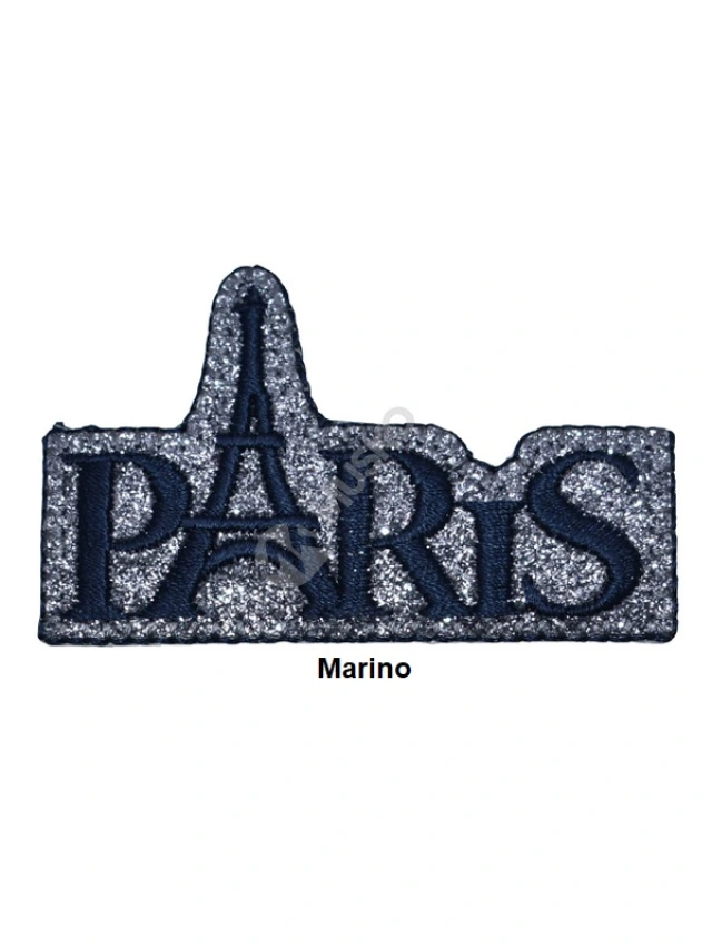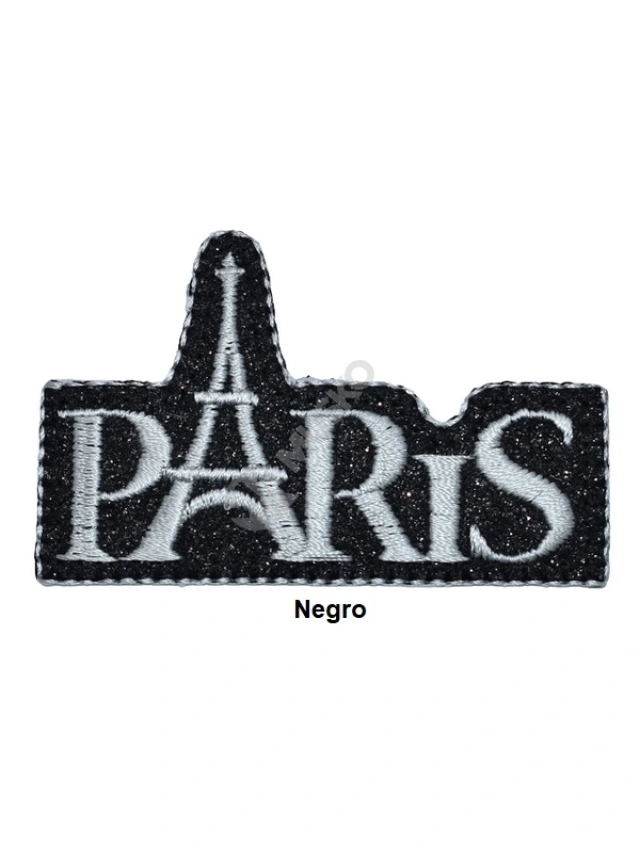 - Aplicaciones termoadhesivas con diseño París con purpurina.