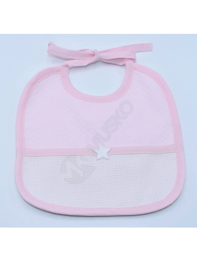 Descripción: - Babero de bebé para bordar con diseño de estrellas. - Sobre este babero podrás bordar tus mejores ideas o el nombre de tu bebé, para poder regalarle algo completamente único y personalizado, que os acompañará en los momentos de la alimentación. - Este babero para bordar incorpora una pieza de tela Aida 5,5 puntos/cm (27 puntos en total) para poder bordar en punto de cruz lo que desees. - No incluye hilos. - El babero no tiene forro. - Medida: 18 x 18 cm - Composición: 100% Algodón. - Disponible en Rosa, Celeste y Beige.