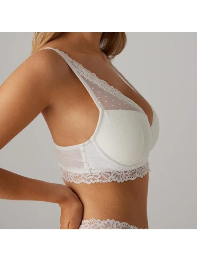 - Sujetador con aro con relleno, con elegantes detalles de encaje y plumeti.