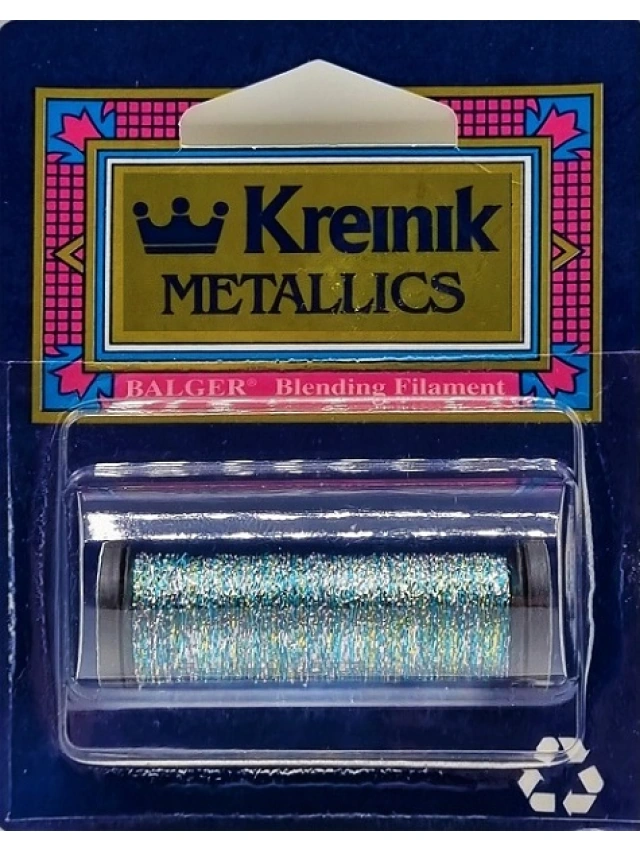 - Use Kreinik Blending Filament, solo o combinado con otros hilos, para crear un efecto de resaltado aleatorio en todos los bordados a mano, como punto de cruz y punto de aguja, además de bordados a máquina, ganchillo y tejido