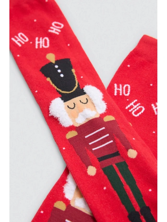 -Calcetines navideños a juego: con diseño frontal del Cascanueces y detalle “HO HO”.