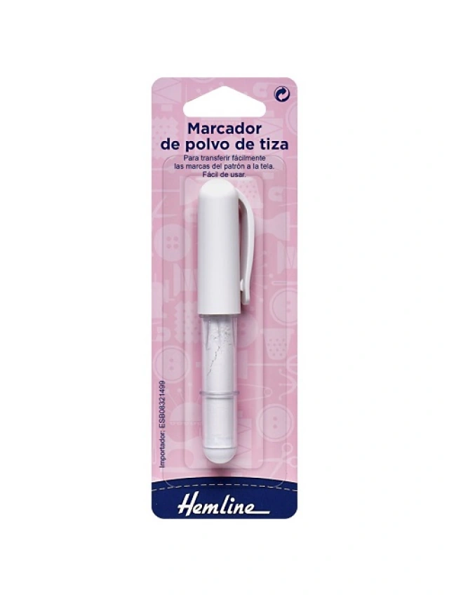 Descripción: - Marcador de polvo ideal para diversas aplicaciones. - Su fórmula de alta calidad permite una escritura suave y precisa, garantizando una excelente visibilidad. - Su diseño ergonómico facilita el agarre y la comodidad durante su uso. - Estos Marcadores de tiza en polvo hacen que te olvides de los jaboncillos de sastre! - Las marcas desaparecen con agua. - Fácil de utilizar con o sin regla. El blanco perfecto para telas oscuras y azul ideal sobre telas claras.