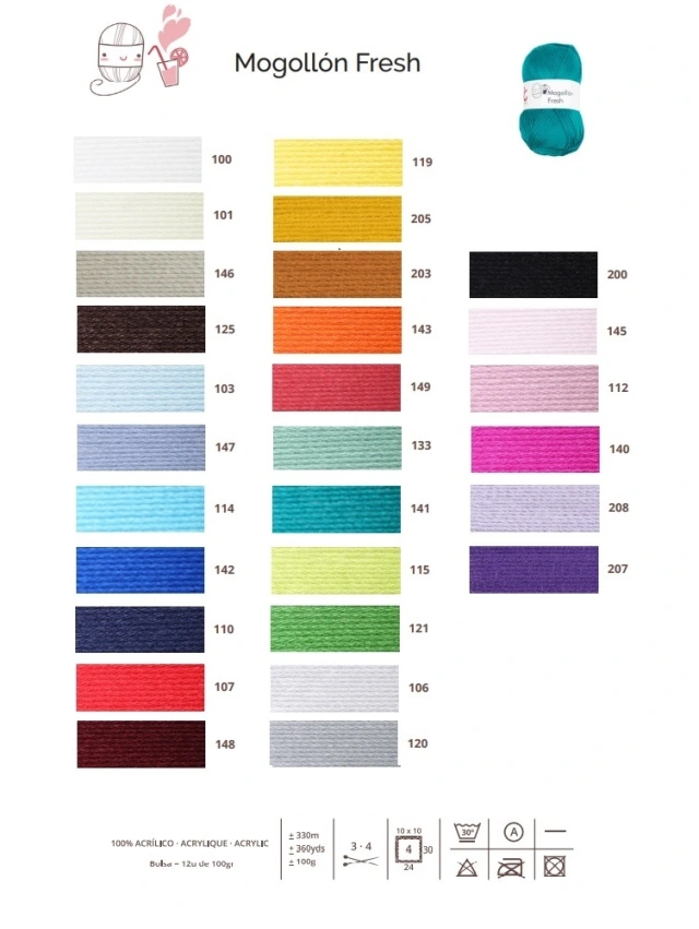 - Mogollón Fresh llega con una gama cromática amplia para llenes tu armario de color. Además, como todos los Mogollón, podrás sacarle el máximo partido a sus ovillos de larga duración.