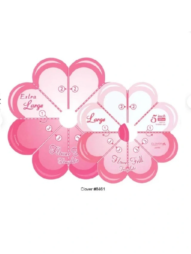 Descripción: - Set de plantillas para hacer flores frill (volantes) de Clover. - Se utilizan para crear flores de tela que se pueden usar para decorar joyas, ropa, accesorios para el hogar y más. - Incluye instrucciones fáciles de seguir. - 2 tamaños disponibles: Grande y extra grande: 125 mm, 150 mm. - Cada paquete: 2 hojas. - Material: Papel.