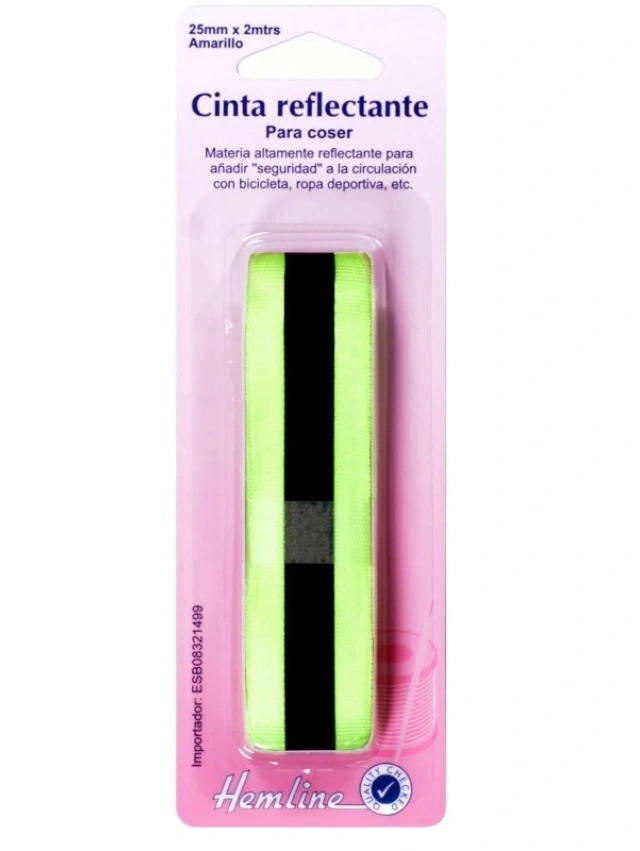- Cinta de 25 mm de ancho con una banda central plateada reflectante de de 10 mm.