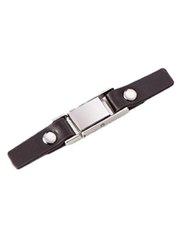 - Broche de chaqueta metálico con los extremos en piel sintética.