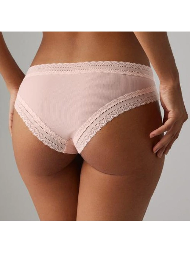 - Braga brasileña de tacto suave con detalles en los bordes en encaje.