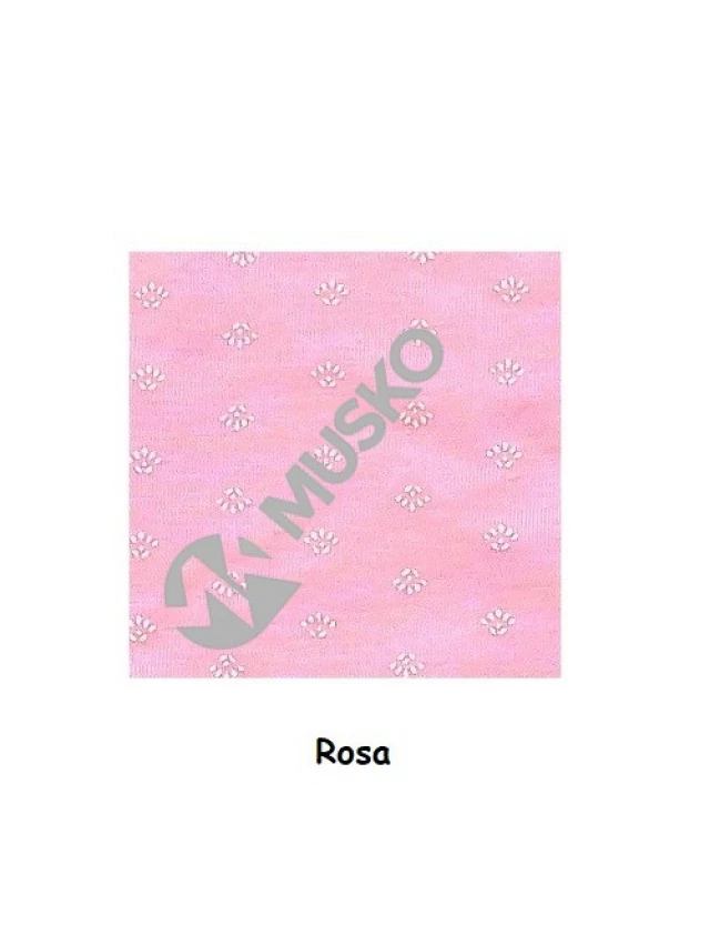 - Modelo estampado con pequeños motivos blancos en fondo color.