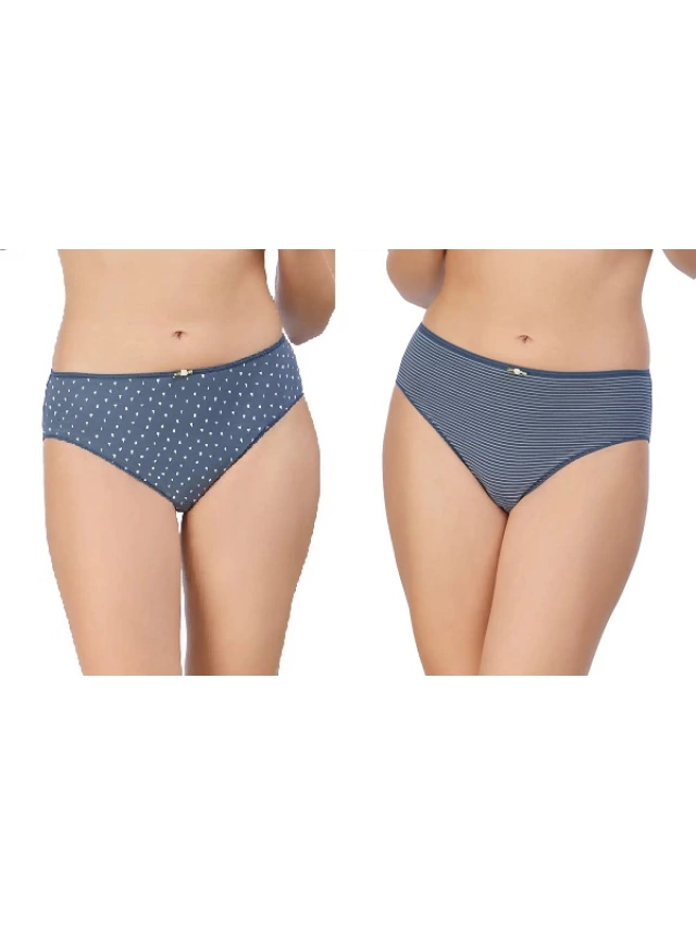 - El pack está formado por dos bragas del mismo color, con distintos estampados (en rayas y corazones).