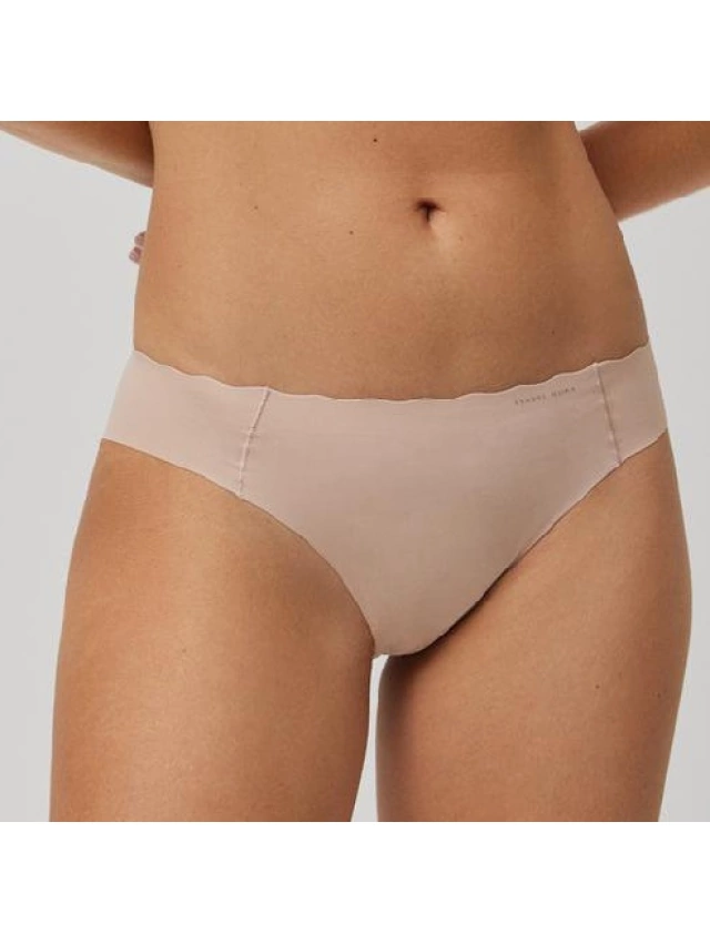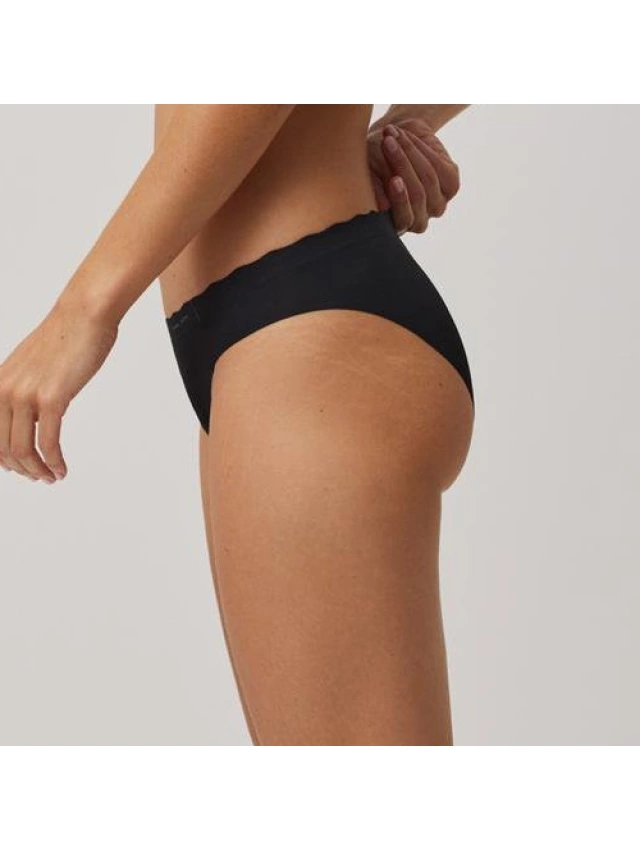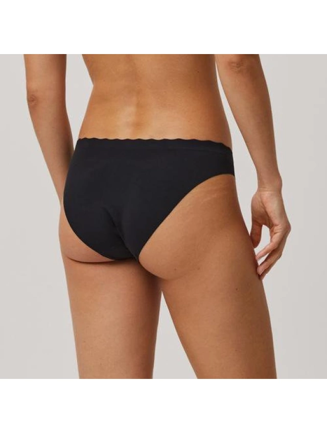 - Braga mini de tejido de microfibra cortada a láser con cinturilla ondulada y con costuras muy discretas que hacen que la prenda sea imperceptible bajo la ropa.