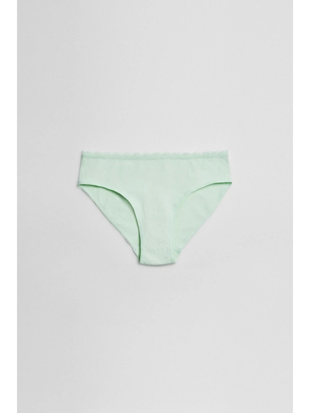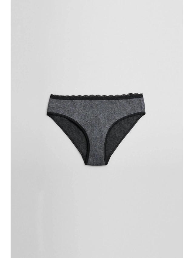 - Pack de 2 braguitas sin costuras de colores gris jaspeado y verde menta, decoradas con puntilla.