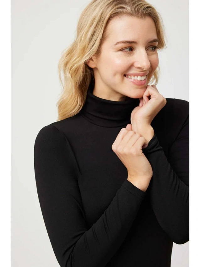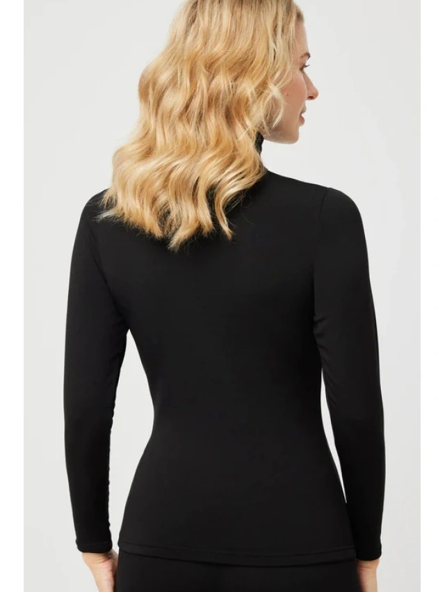 -Camiseta térmica de manga larga con cuello alto, diseñada para aportar calidez y confort sin añadir volumen.