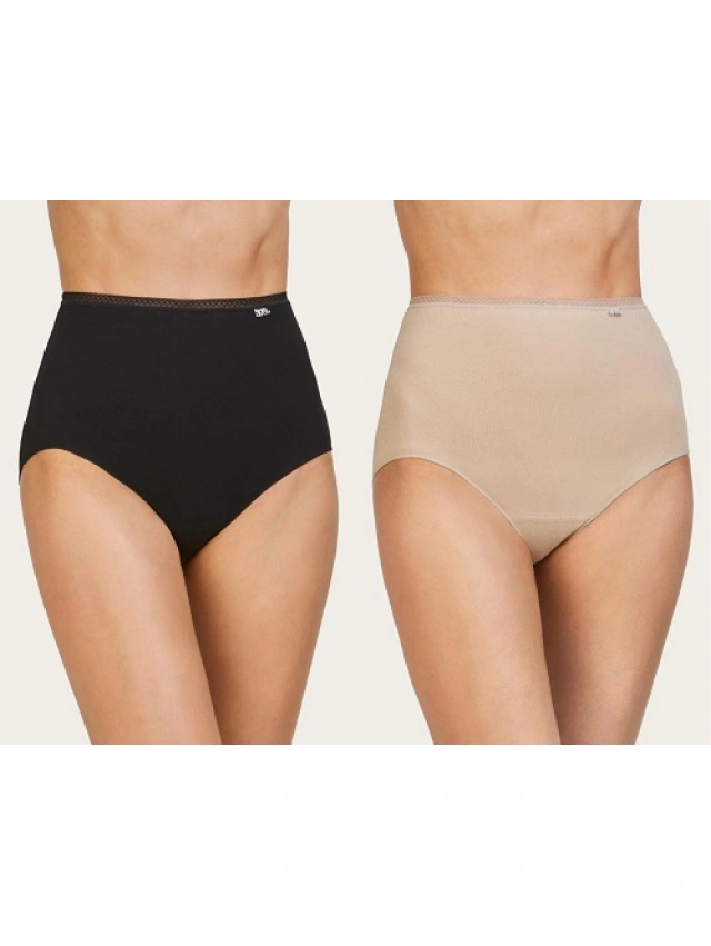 -Pack compuesto por dos braguitas lisas en combinación Negro/Piel y Crudo/Azul