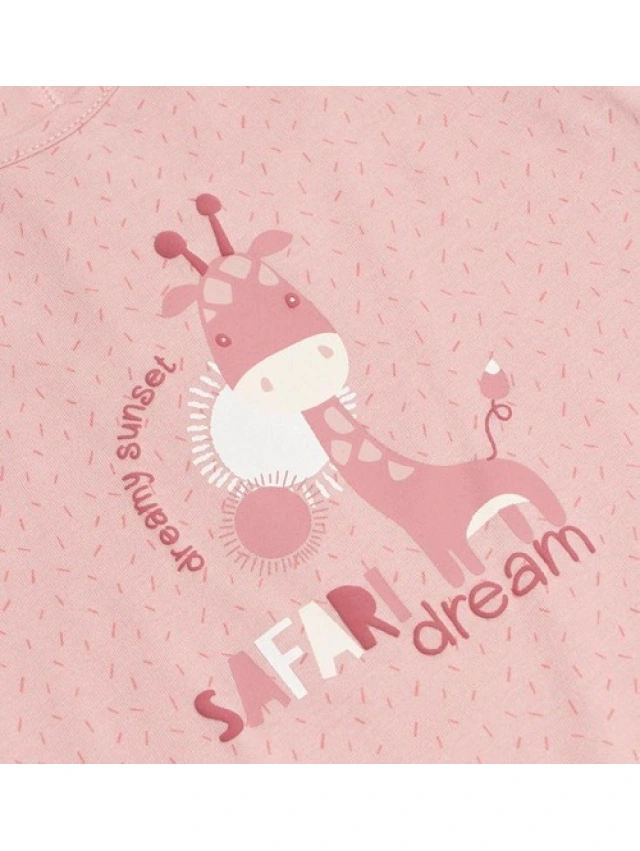 - Textura fina y suave con estampado fantasía y estampado de la figura de una jirafa en el centro delantero.