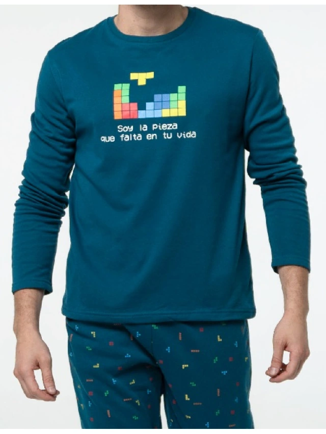 -Pijama para caballero afelpado con un diseño inspirado en el videojuego Tetris.