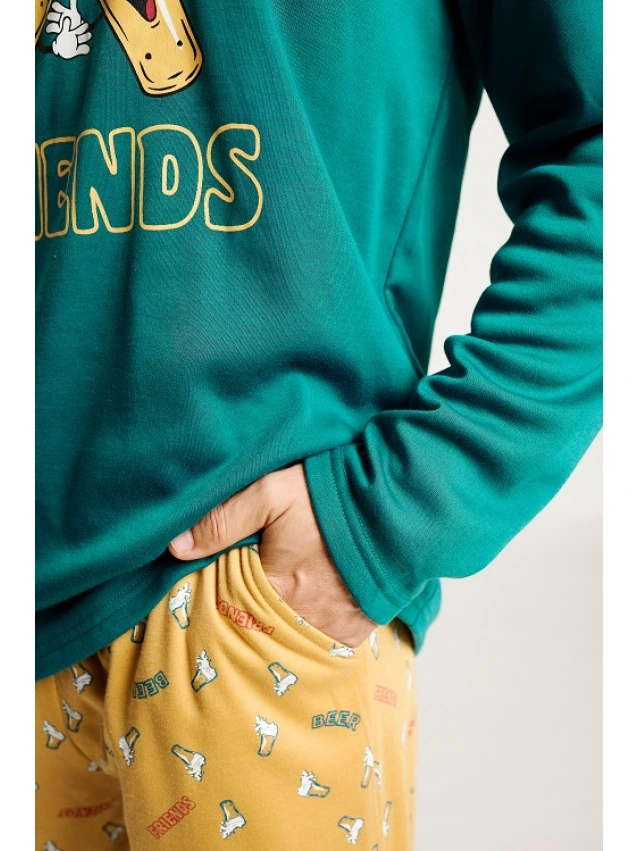-Pijama de hombre camiseta de manga larga y un pantalón largo.