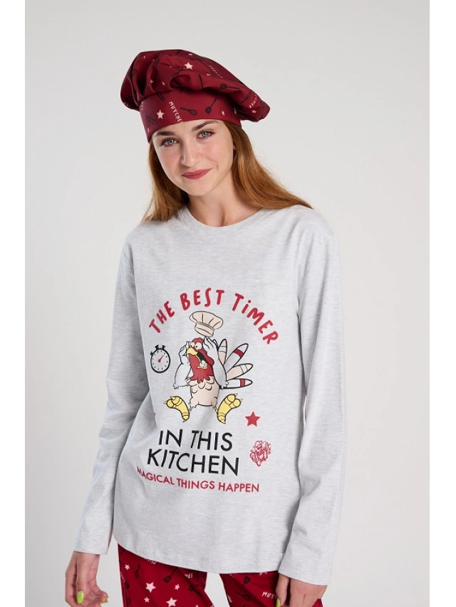 -Camiseta manga larga con frontal decorada de una simpática gallina Chef.