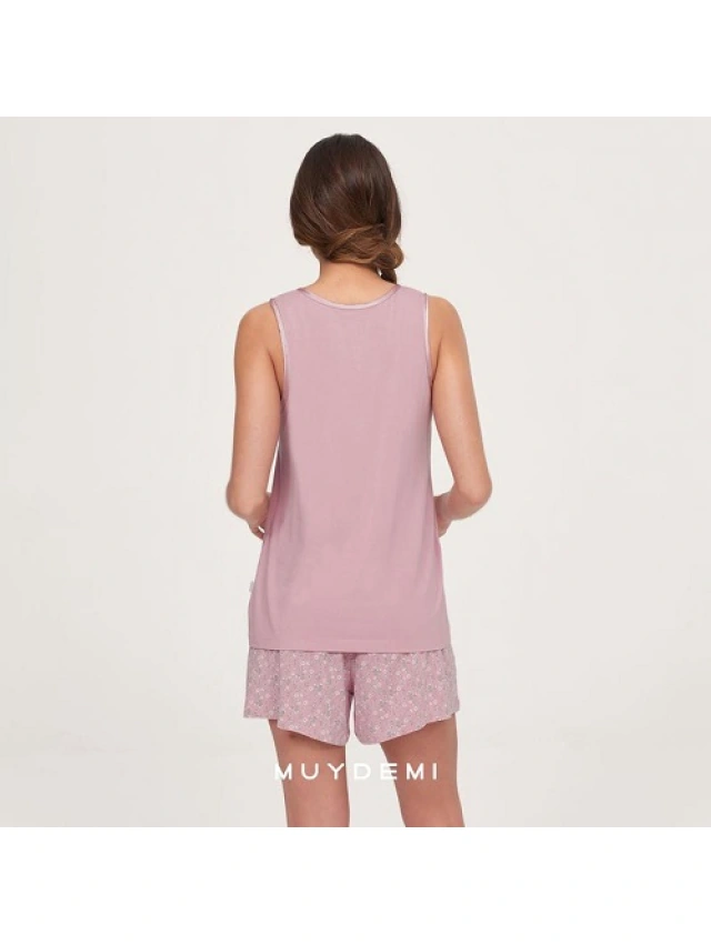 - Pijama de señora compuesto de pantalón corto y camiseta sin mangas.