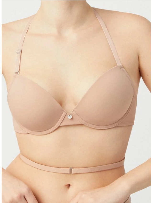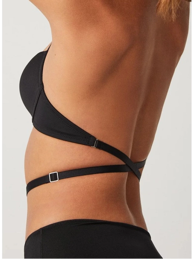 - Sujetador básico de laterales estrechos y reguladores metálicos con los que ajustar la prenda a tu silueta.