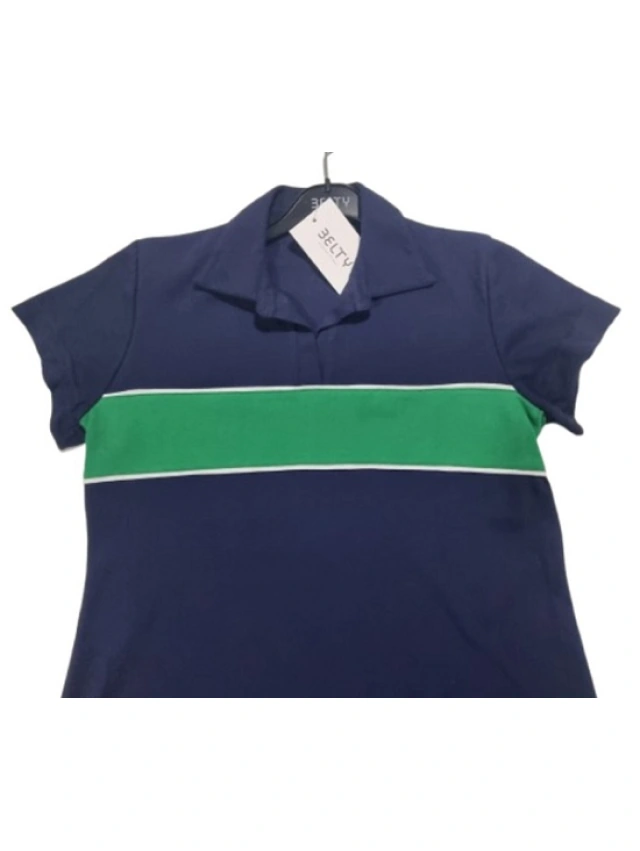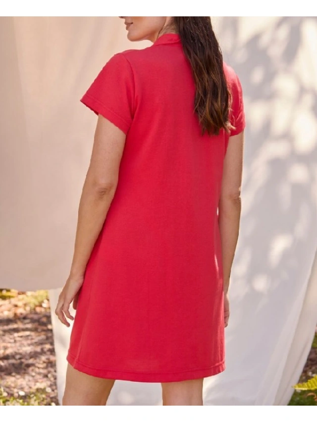 - Diseño con una franja en tejido combinado de piqué y cuello camisero.