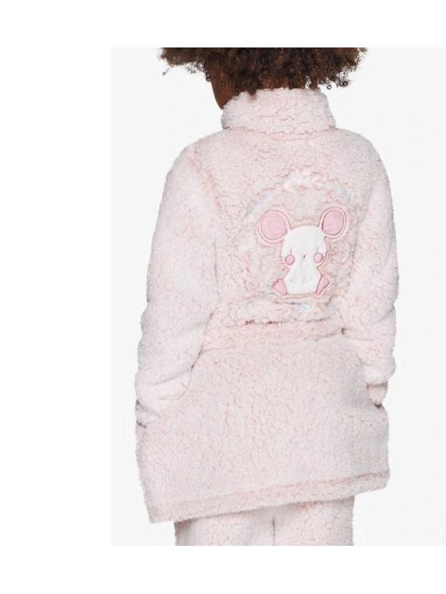 - Con cuello alto, cremallera con detalle de goma con ilustración de ratita.
