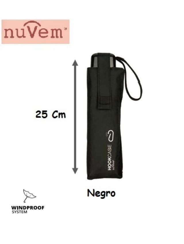Descripción: Características: - Paraguas plegable de Nuvem, de 8 paneles - Diseño en colores con ribete de diferente color - De 54 cm de diámetro entre varillas, con mecanismo automático de apertura de 3 secciones y cierre, - Sistema antiviento - Con 8varillas metálicas, cierre de velcro y mango ergonómico con cinta de transporte. - Presentado en funda individual a juego con el color del paraguas